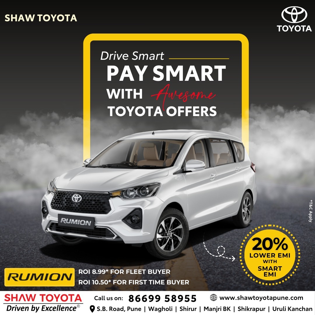 Toyota Rumion, Toyota Offers, Smart EMI, Low EMI Car, Toyota Pune, Shaw Toyota, Car Loan Offer, Best Car Deals, New Car Purchase, Family MPV, Toyota Rumion Price,